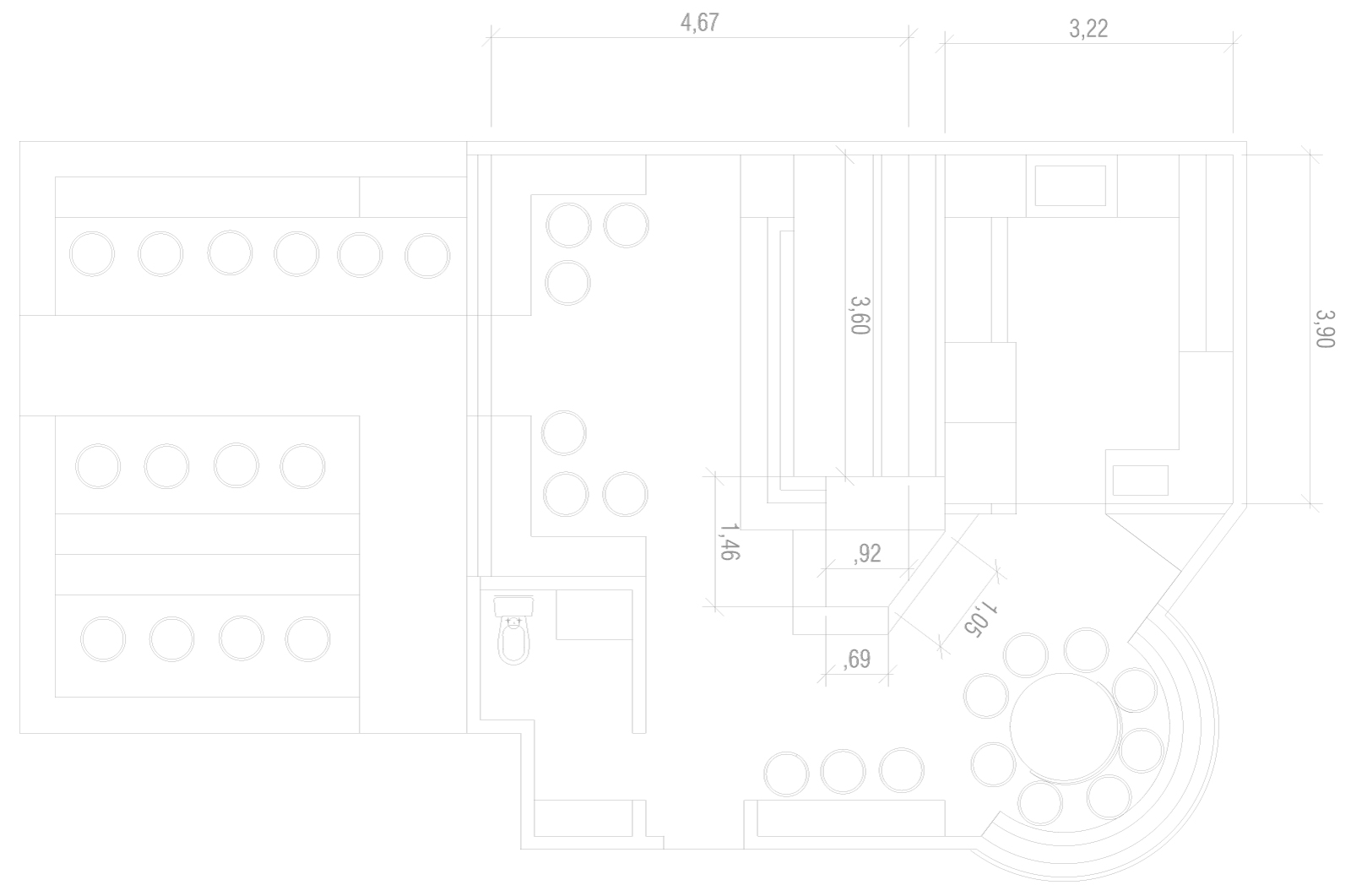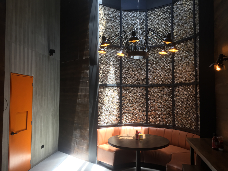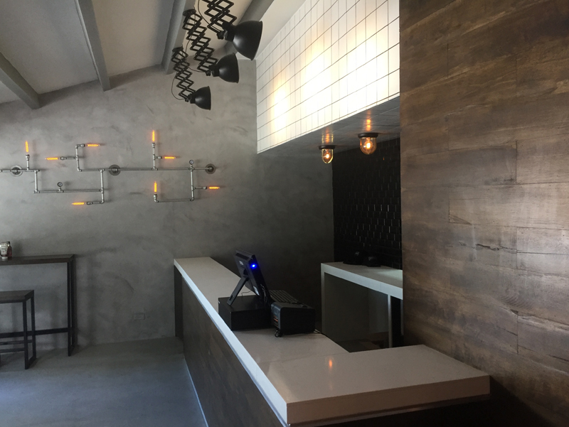 EL PROYECTO SE BASÓ EN UNA NUEVA IDEA DE HAMBURGUESAS PARA LA CIUDAD DE BOGOTÁ, TENIENDO UN MUY BUEN PRODUCTO, DE MUY BUENA CALIDAD, ME SOLICITARON TENER UN ESTILO DIFERENTE AL DE LA MAYORÍA DE LA COMPETENCIA, PARA REPRESENTAR ESTE NUEVO ESTILO DE HAMBURGUESAS. UBICADO EN UN LOCAL DENTRO DE UNA CASA DE OFICINAS EN EL NORTE DE BOGOTÁ, EL RETO ERA CAMBIARLE LA CARA AL LOCAL RESIDENCIAL, PARA CONVERTIRLO EN UN ESPACIO ACOGEDOR Y ESPECIAL PARA LA VENTA DE LAS HAMBURGUESAS. POR ESTO PROPUSE TRABAJAR CON UNA PALETA DE COLORES DE TIERRA, GRISES Y PIEDRA. EL DISEÑO DEL LUGAR SE BASÓ EN LAS HAMBURGUESERÍAS TIPO BROOKLYN, EN DONDE EL CEMENTO Y LA MADERA SE COMBINAN MUY BIEN PARA DAR UN ESTILO MUY URBANO. JUGANDO CON UNA BUENA ILUMINACIÓN Y LÁMPARAS HECHAS A LA MEDIDA DEL LOCAL, EL ESPACIO SE VUELVE ÚNICO Y RESALTA LA EXPERIENCIA DE IR POR UNA HAMBURGUESA DIFERENTE.